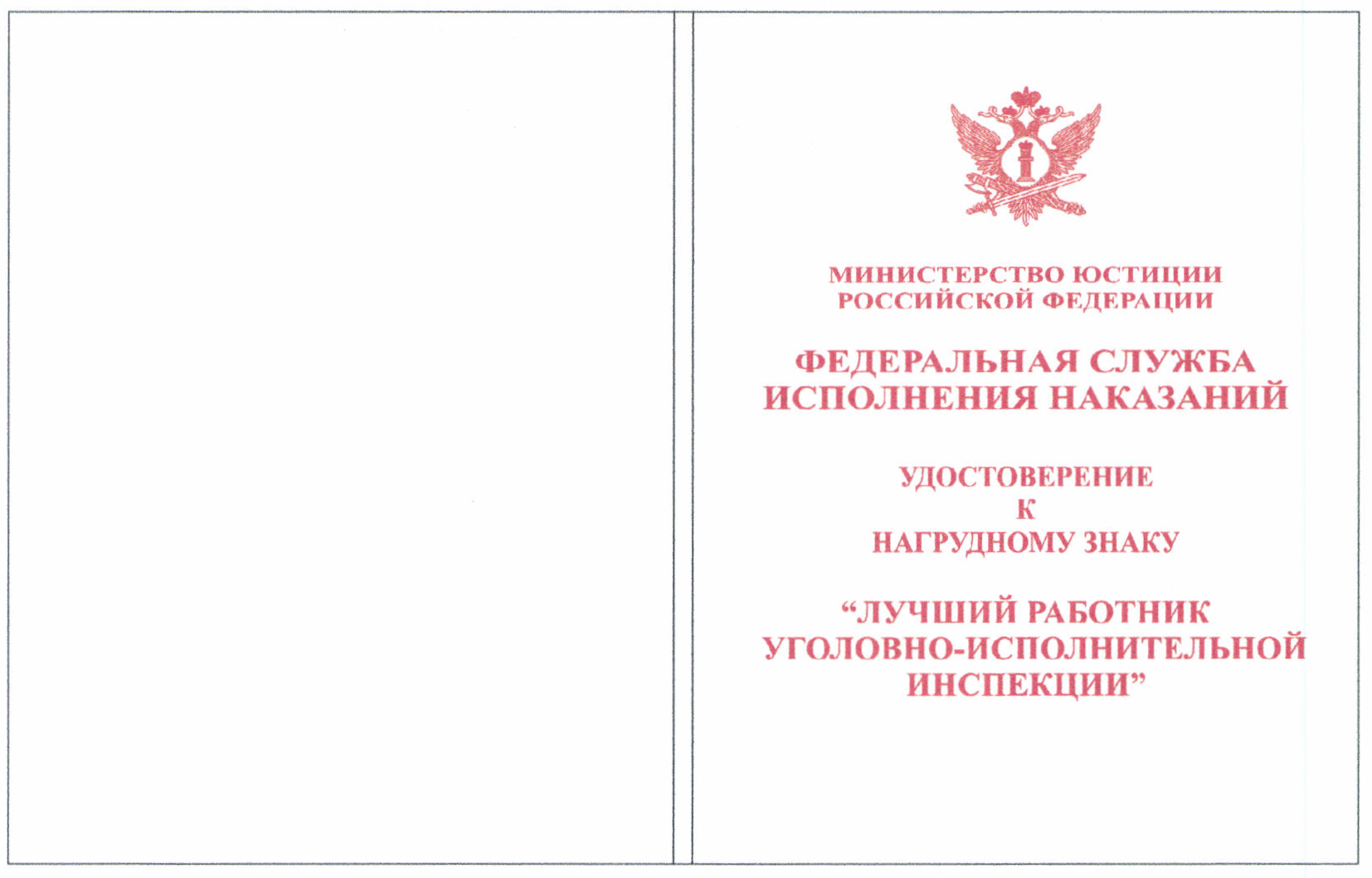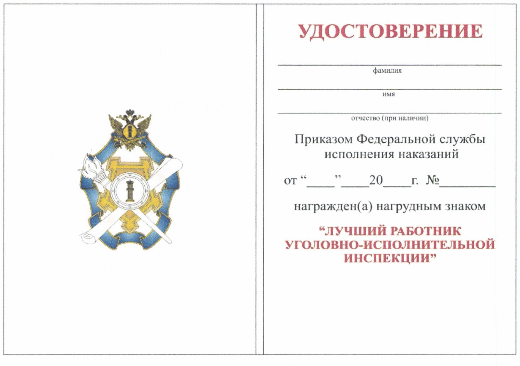 нагрудный знак "Лучший работник уголовно-исполнительной инспекции";