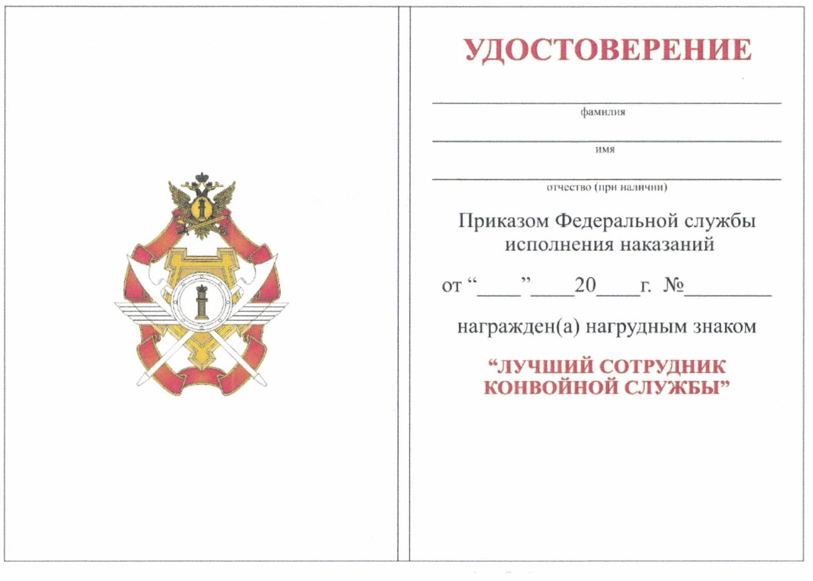 1. Нагрудный знак "Лучший сотрудник службы охраны" является ведомственной наградой ФСИН России. Описание, рисунок и рекомендуемый образец бланка удостоверения к нагрудному знаку "Лучший сотрудник службы охраны" даны в приложениях № 1 - 3 к настоящему Положению.