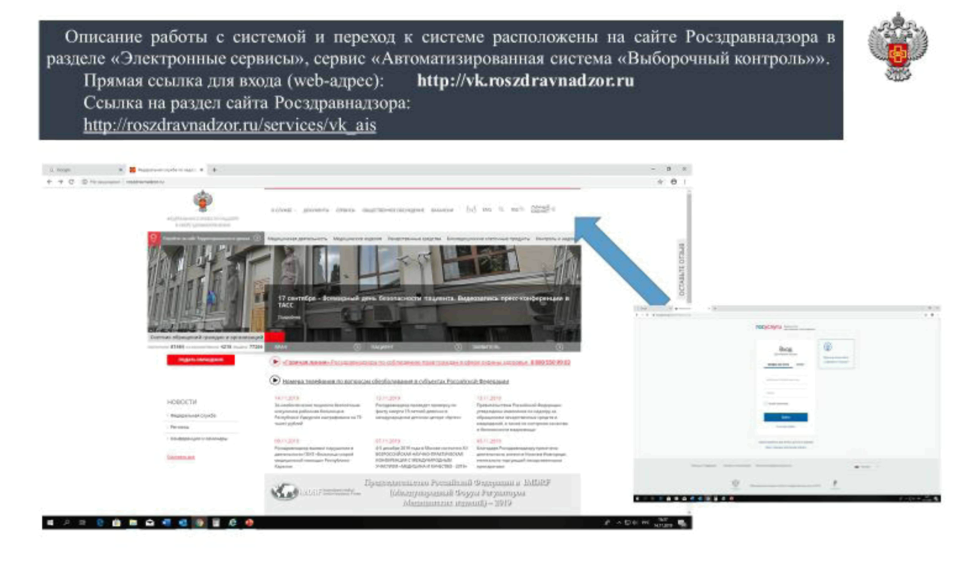 Описание работы с системой и переход к системе расположены на сайте Росздравнадзора в разделе "Сервисы", сервис "Автоматизированная система "Выборочный контроль" http://roszdravnadzor.ru/services/vk_ais.