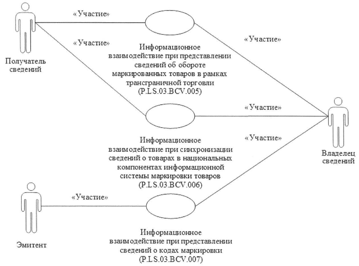 | Владелец сведений | осуществляет представление сведений о маркированных товарах, реализованных в рамках трансграничной торговли, в том числе по запросу от уполномоченных органов других государств-членов; осуществляет представление сведений о товарах, включенных в национальный компонент информационной системы маркировки товаров; осуществляет представление сведений для заказа генерации (или регистрации) кодов маркировки, а также прием и обработку сведений о сгенерированных (или зарегистрированных) кодах маркировки, а также представление сведений об использовании кодов маркировки | уполномоченный орган государства-члена, в котором зарегистрирован экспортер (P.LS.03.ACT.004) |