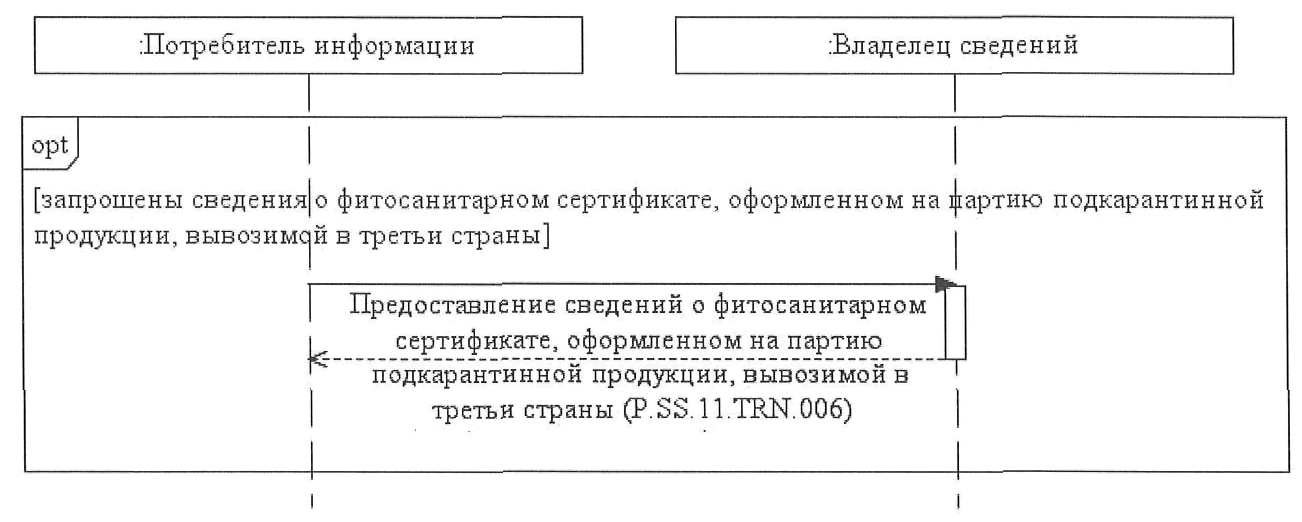Рис. 9. Схема выполнения транзакции общего процесса «Предоставление сведений о фитосанитарном сертификате, оформленном на партию подкарантинной продукции, вывозимой в третьи страны» (P.SS.11.TRN.006)