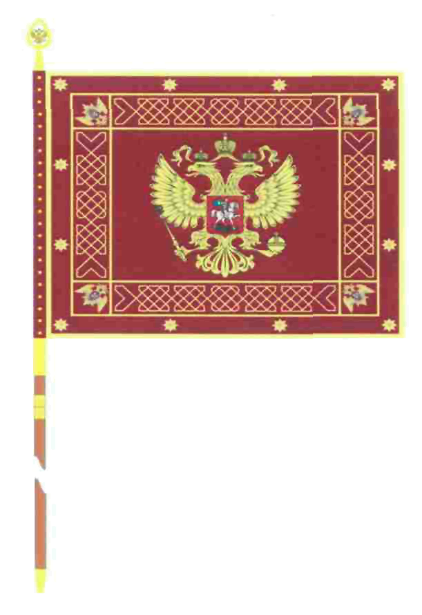 Ширина полотнища знамени - 110 см, длина - 130 см, с запасом из ткани крапового цвета для крепления к древку.
