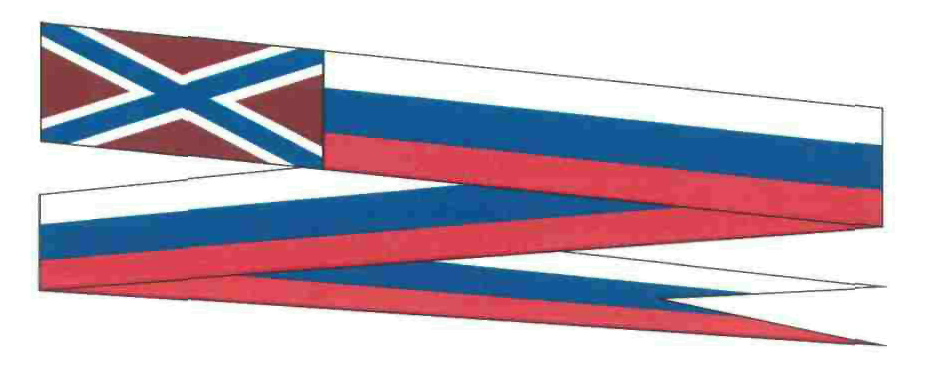 Вымпел кораблей и катеров войск национальной гвардии Российской Федерации (далее - вымпел) представляет собой узкое полотнище цветов Государственного флага Российской Федерации с размещенным у шкаторины изображением флага кораблей, катеров и судов войск национальной гвардии Российской Федерации и с двумя сужающимися косицами.