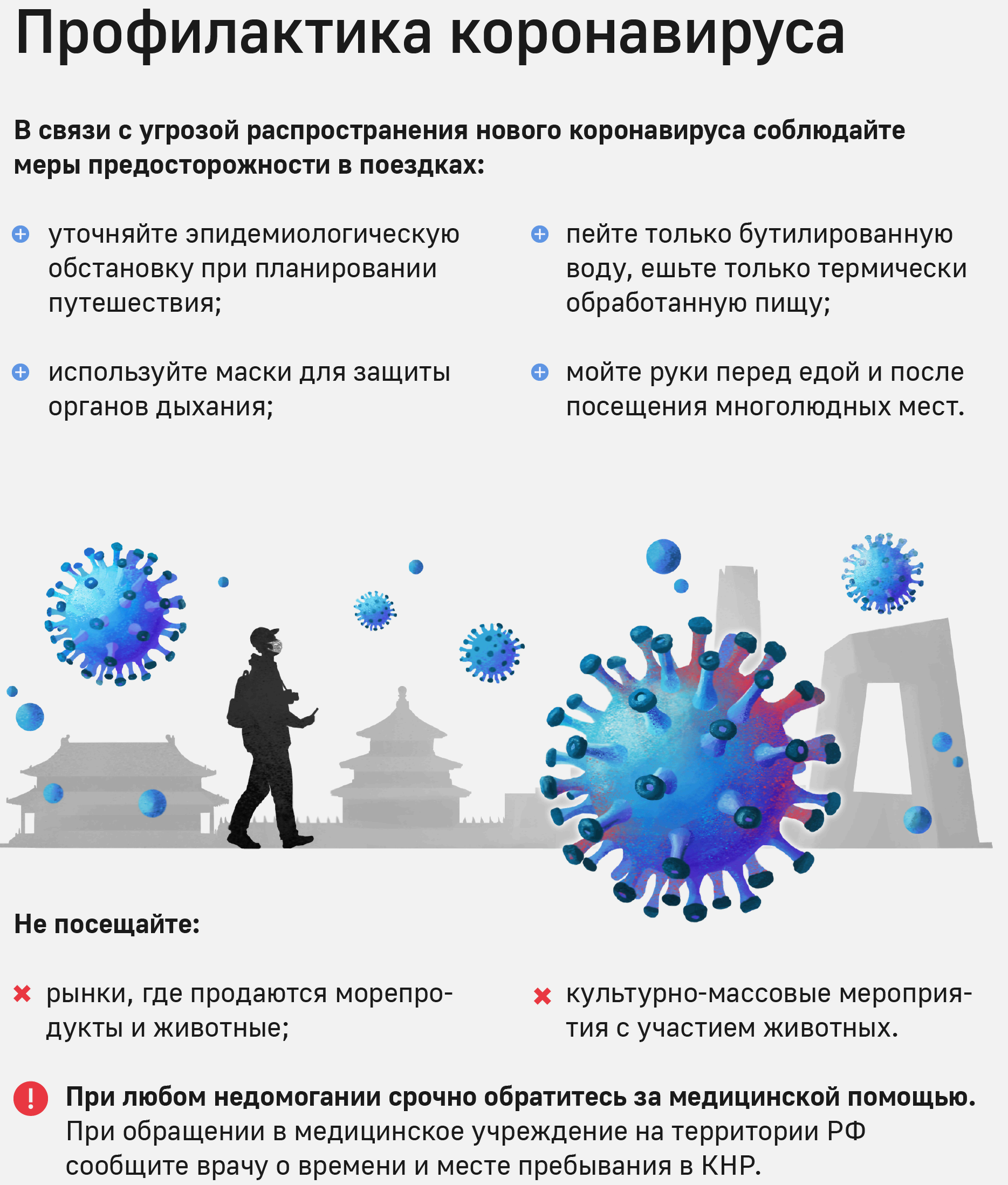 - при обращении за медицинской помощью на территории Российской Федерации информировать медицинский персонал о времени и месте пребывания в КНР.