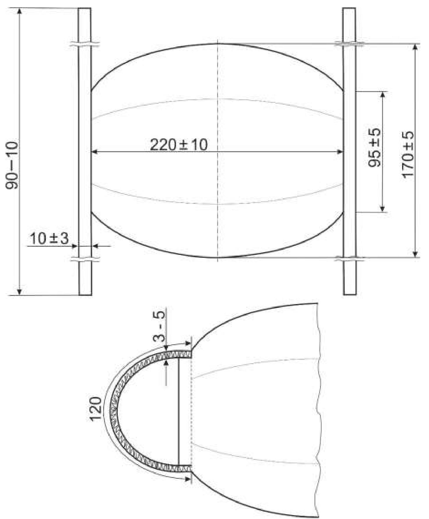 - не менее 170 мм, d - не менее 42 мм, L - не менее 150 мм