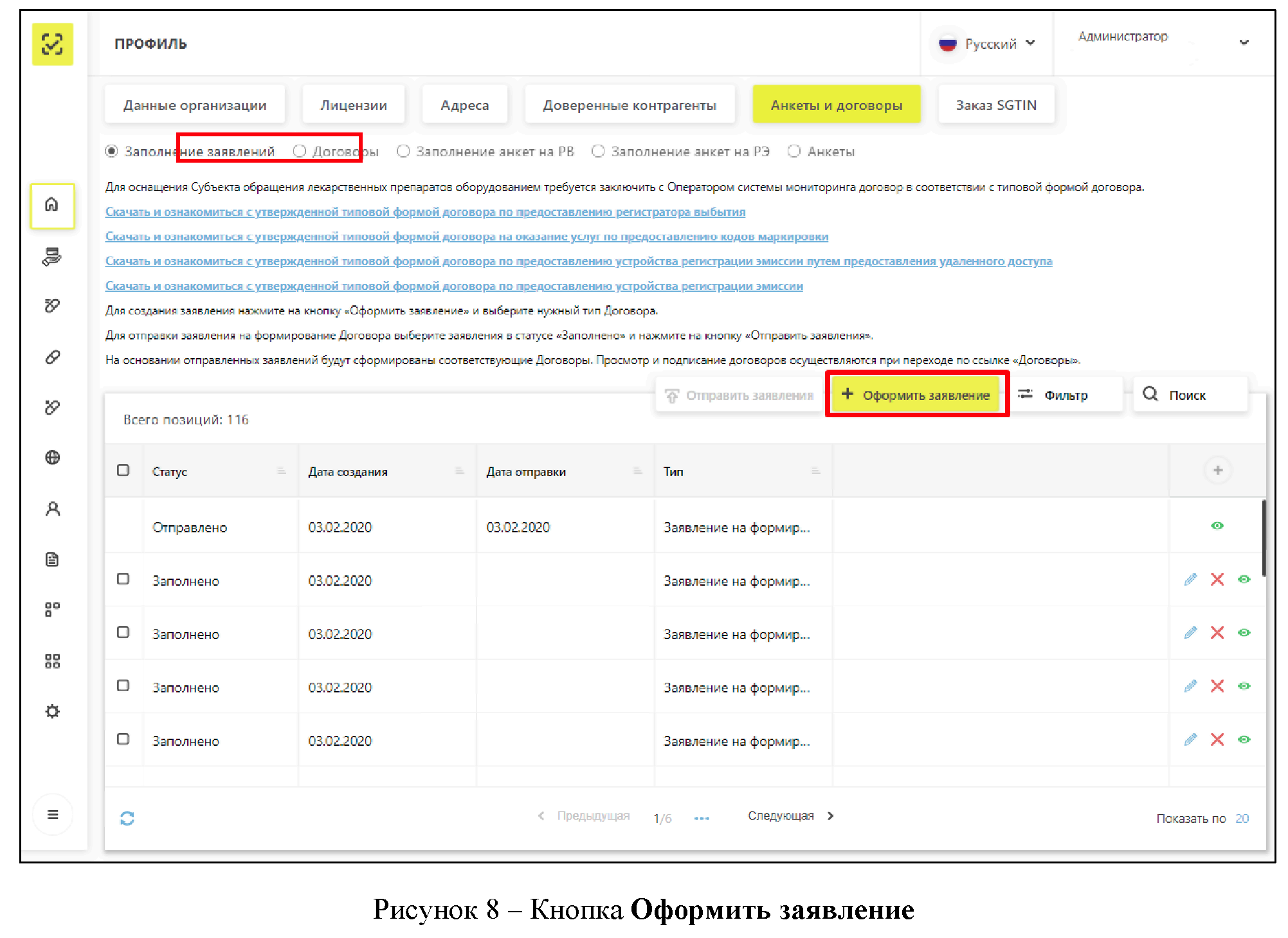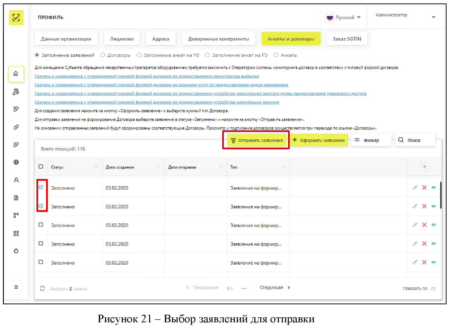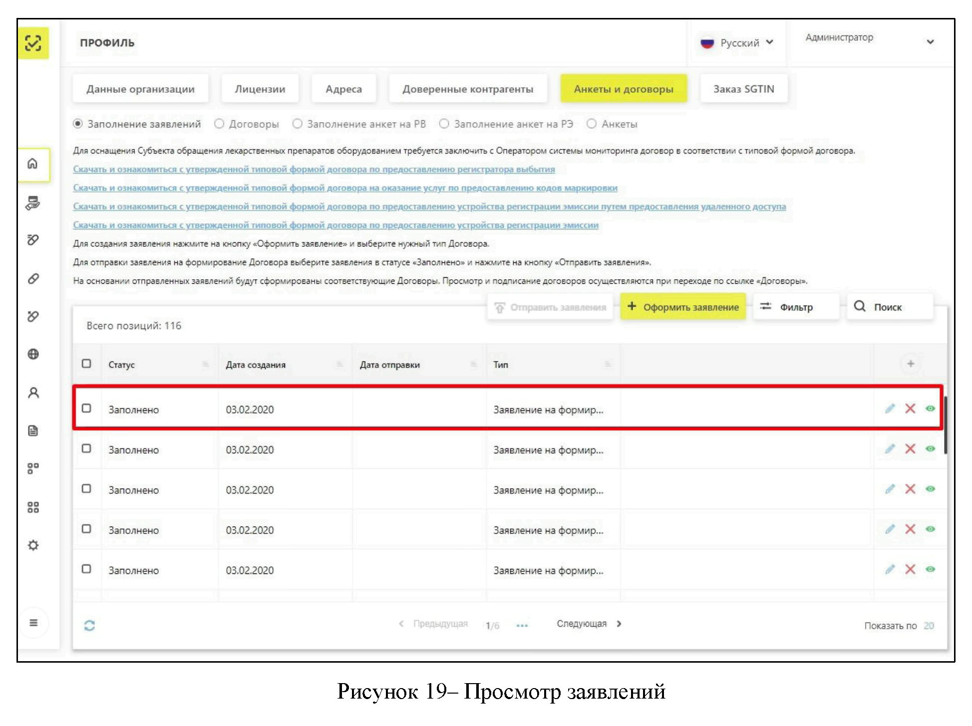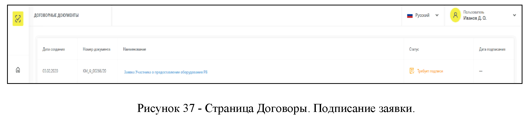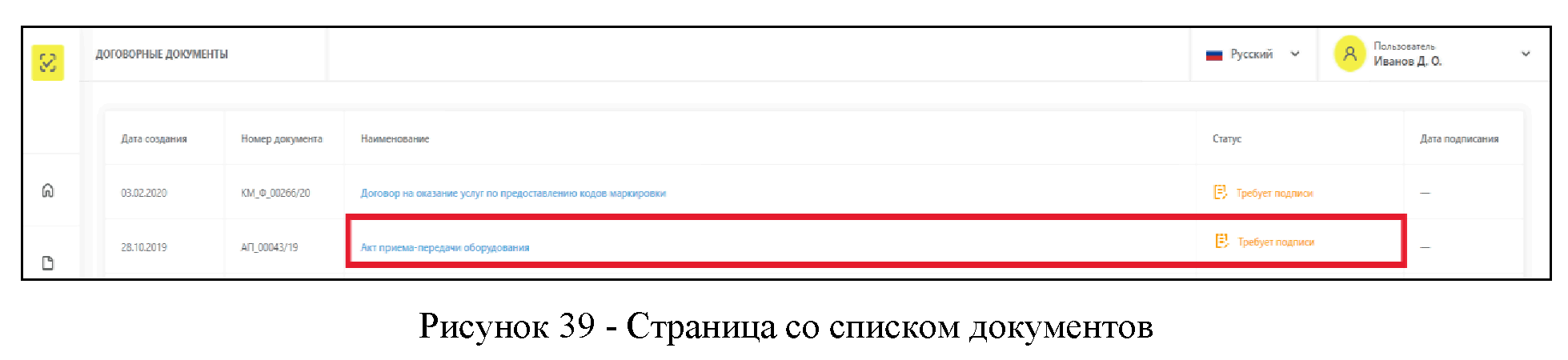 Для перехода к подписи подготовленных документов требуется перейти на страницу "Договоры" (Рисунок 38).