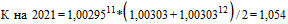 | Итого инфляция в 2019 году в месяц равна корню двенадцатой степени из 105,3 | 1,00589 |