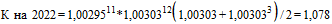 Индекс-дефлятор на конец первого года строительства декабрь 2020 умножается на индекс-дефлятор на конец второго года строительства и умножается на среднее арифметическое между январем и мартом 2022