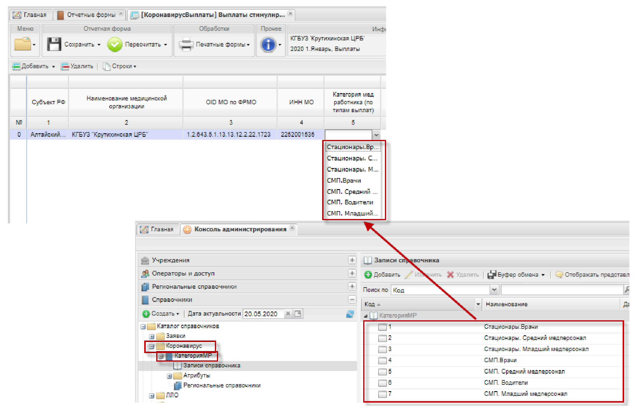 и выбором данных из справочника ФРМР (Рисунок 13).