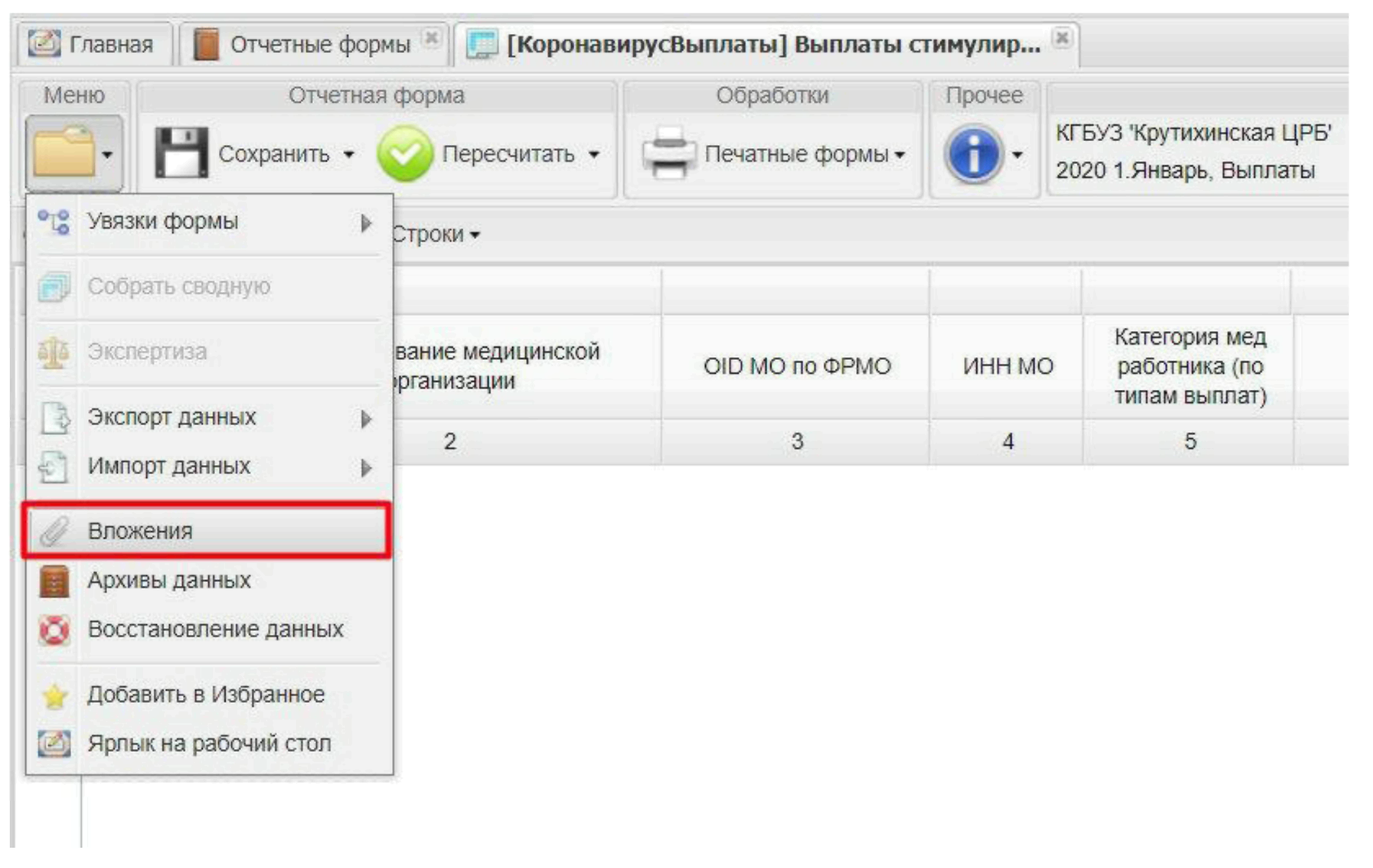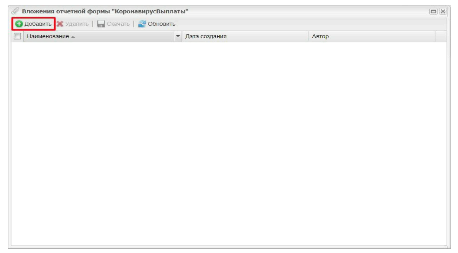Также прикрепление файлов можно осуществить через панель инструментов в списке отчетных форм. Для этого на панели инструментов выберите пункт «Вложения» (Рисунок 21) и в открывшемся окне осуществите добавление файла.