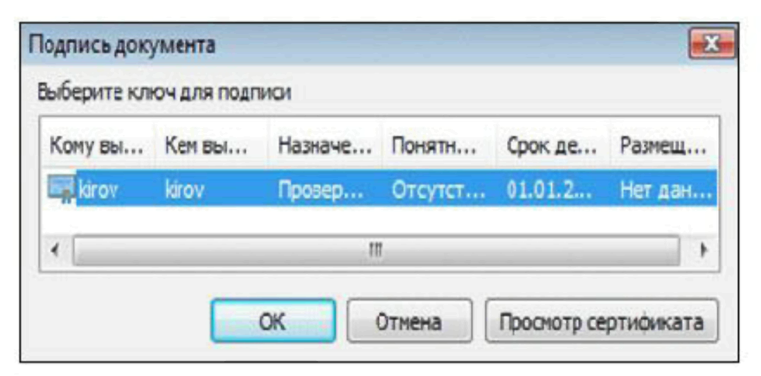 Рисунок 26 Выбор ключа подписи