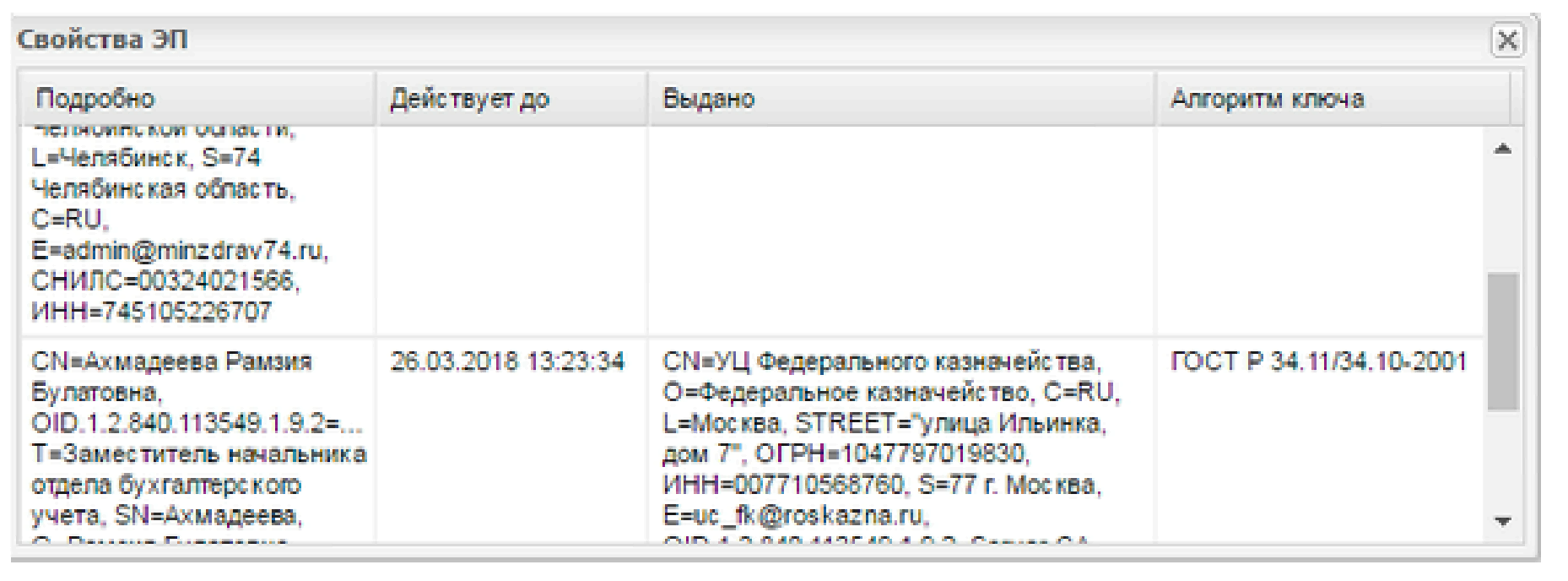Рисунок 27 Свойства ЭП