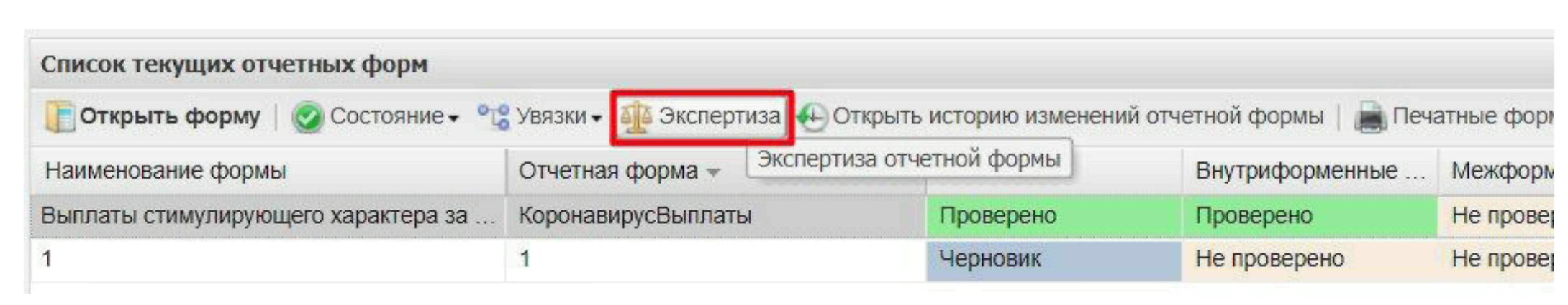 Рисунок 29 Кнопка "Экспертиза"