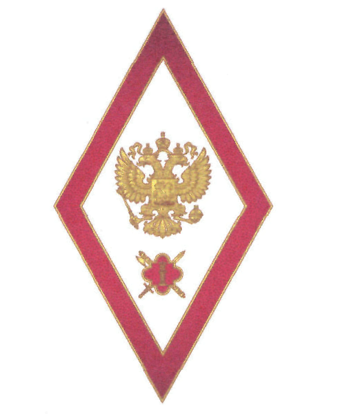 Знак отличия за окончание образовательных организаций высшего образования Федеральной службы исполнения наказаний (далее - знак отличия) имеет форму ромба. Поле ромба окаймлено полосками шириной 2,5 мм. На верхнюю часть ромба помещено изображение Государственного герба Российской Федерации. В нижней части ромба расположен фигурный щит с изображением "столпа Закона". Щит лежит на перекрестье меча и ликторского пучка.