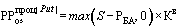 Величина процентной части рыночного риска по требованиям и обязательствам по поставке базисного (базового) актива и получению (уплате) денежных средств по приобретенному опциону типа "Put" и по проданному опциону типа "Put" рассчитывается профессиональным участником по формуле: