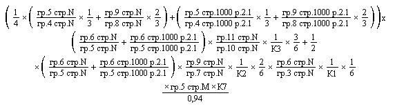 графы 4 - 6 по строкам за исключением строк 020, 100 - произведения значений граф 4, 7, 10 подраздела 2.1 раздела 2, значения графы 4 подраздела 2.2 раздела 2, значений соответственно граф 3 - 5 по строке 01 подраздела 2.3 раздела 2 и значений соответственно граф 13 - 15 раздела 3;