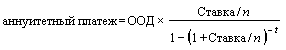 ООД - остаток основного долга на дату расчета аннуитетного платежа;