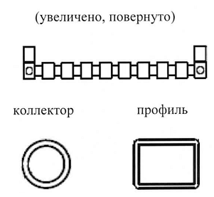| Крепеж и коллектор представляют собой одну деталь прямоугольного сечения и примыкают к вертикальным трубам |