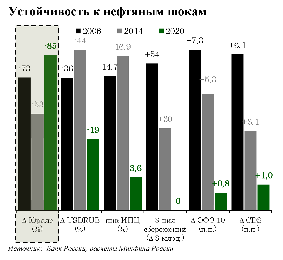 Последствия беспрецедентного обвала цен на нефть при этом не были драматичными: национальная валюта и финансовые рынки сохраняли стабильность, инфляция и инфляционные ожидания оставались под контролем, не наблюдалось дестабилизации сберегательного поведения, пассивная база банковского сектора сохранила устойчивость.