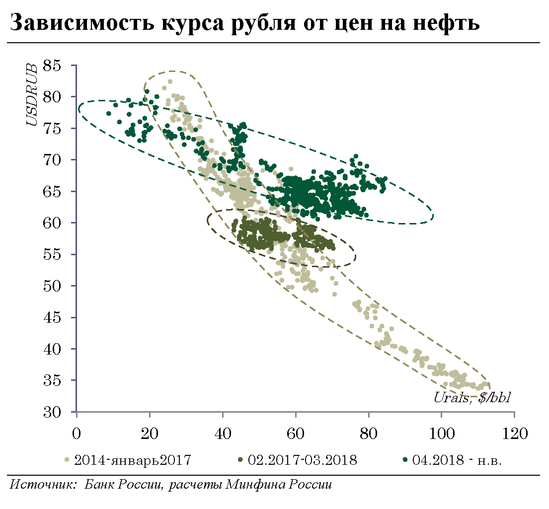 Проведение бюджетной политики в соответствии с «бюджетными правилами» позволяет эффективно «локализовать» нефтяную волатильность, обеспечивая устойчивость к такого рода шокам как непосредственно государственных финансов, так и экономики в целом (см. следующий подраздел).