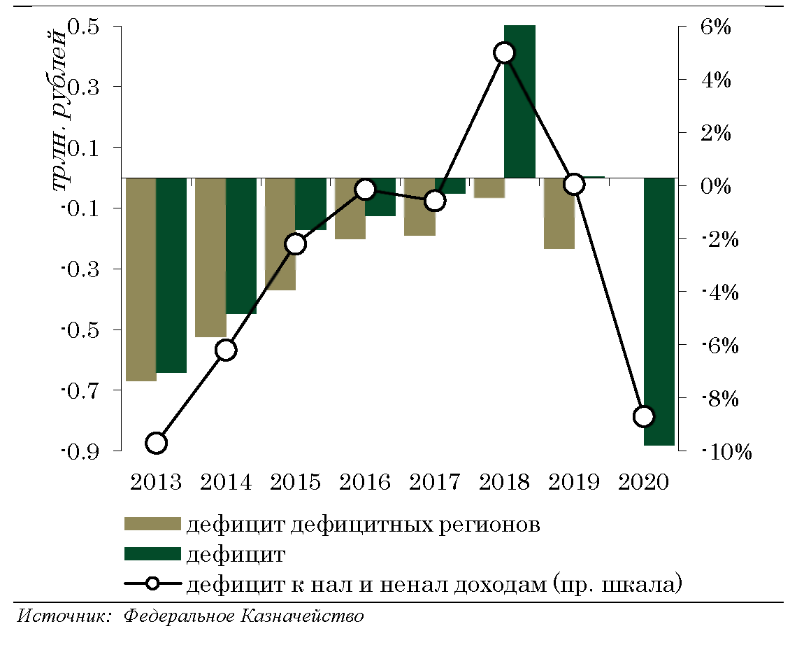 - с учетом региональных и «забалансовых» мер поддержки, а также сокращения доходов бюджетов бюджетной системы совокупный размер фискального импульса составляет более 9,0% ВВП.