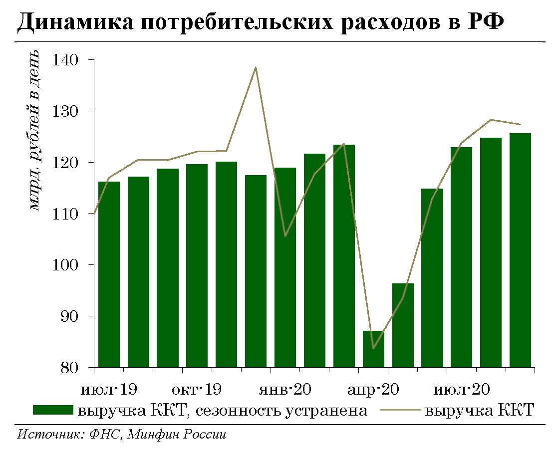 Рост социальных выплат, наряду со сдержанным влиянием кризиса на трудовые доходы поддерживают потребительскую уверенность в пост-карантинный период. Сопутствующий рост потребительского спроса содействует относительно быстрому восстановлению деловой активности в секторах, где деятельность приостанавливалась. Это создает необходимые предпосылки для восстановления занятости и снижает риски сокращения экономического потенциала в соответствующих отраслях.