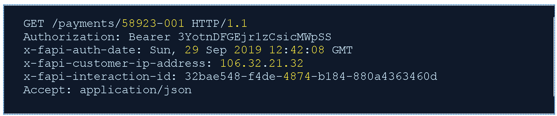 | x-fapi-auth-date | Время последнего входа Пользователя в систему с TPP. Значение предоставляется в виде HTTP-date, как в разделе 7.1.1.1 [RFC7231]. Например, x-fapi-auth-date: Mon, 26 Aug 2019 12:23:11 GMT | Необязательно | Необязательно | Необязательно | Не используется |