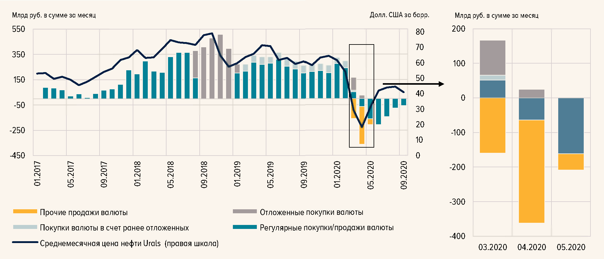 В рамках механизма бюджетного правила объем дополнительных нефтегазовых доходов федерального бюджета, направляемых на покупку иностранной валюты для последующего перечисления в Фонд национального благосостояния (ФНБ), или объем иностранной валюты из ФНБ, направляемый на продажу для последующего перечисления в бюджет, рассчитывается Минфином России. Банк России по поручению Минфина проводит операции на валютном рынке в рамках бюджетного правила равномерно и в рамках заявленных Минфином объемов, чтобы не оказывать значимого влияния на динамику валютного курса. При этом Банк России сохраняет за собой право временно приостановить проведение данных операций в условиях повышенной волатильности на внутреннем валютном рынке, в том числе на фоне реализации внешних рисков или возникновения угроз для финансовой стабильности.