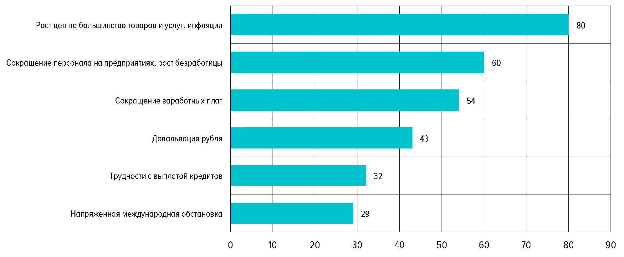 Опросы населения и компаний также указывают на важность низкой и стабильной инфляции как условие благоприятной среды для жизни и ведения бизнеса. Согласно опросам, домашние хозяйства и предприятия называют высокую инфляцию одной из проблем, ухудшающих условия жизни и деловой климат, снижающих конкурентоспособность российских товаров (см. Приложение 2 "Восприятие инфляции населением и бизнесом: результаты опросов").