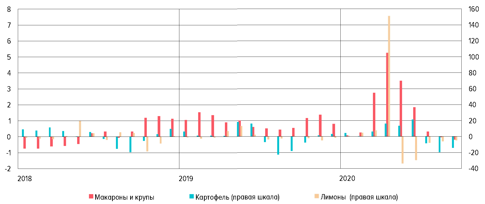 Реализация мер аграрной политики позволит снизить негативное влияние на инфляцию факторов со стороны предложения сельскохозяйственной продукции, изменений валютного курса и конъюнктуры мировых товарных рынков. Результатом станет снижение волатильности цен на продовольствие, которая по-прежнему остается максимальной среди основных компонент инфляции и препятствует снижению инфляционных ожиданий.