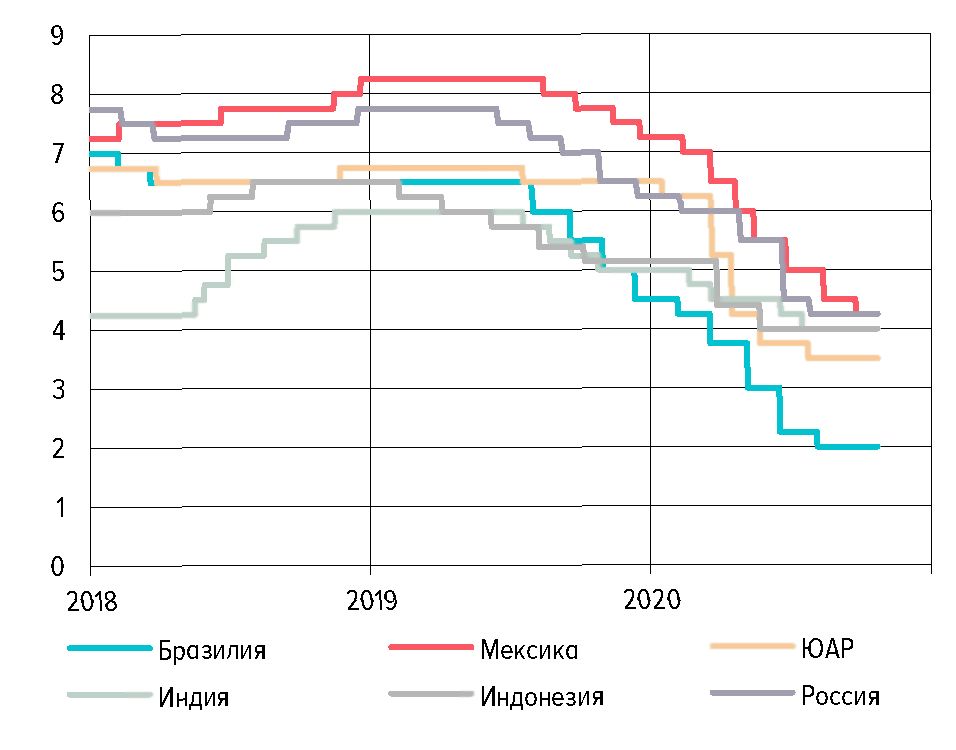 В 2020 г. ЦБ отреагировал на кардинальное изменение экономических условий переходом к мягкой ДКП, снизив ключевую ставку с 6% до исторического минимума в 4,25% годовых.