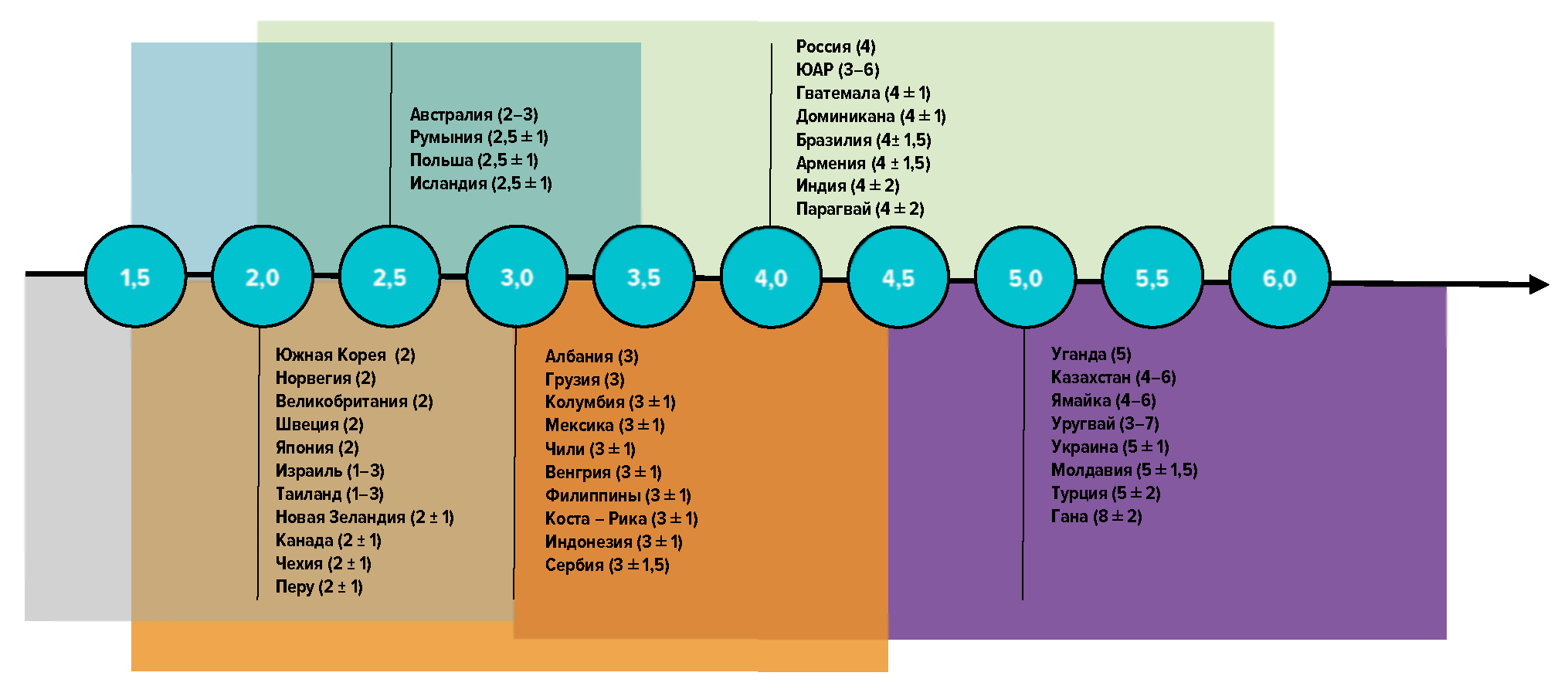 Понятие нейтральной ставки также связано с понятием нейтральной кривой доходности. В состоянии равновесия кривая доходности должна иметь нормальную, то есть возрастающую, форму. Это означает, что долгосрочные процентные ставки в экономике будут выше краткосрочных, так как в долгосрочных процентных ставках участниками рынка учитываются дополнительные премии за срочность и риск. Такая форма кривой доходности в условиях нахождения экономики вблизи потенциала и инфляции у цели, а ключевой ставки - на нейтральном уровне отражает установление реальных процентных ставок на различные сроки на уровнях, которые формируют нейтральные денежно-кредитные условия в экономике.