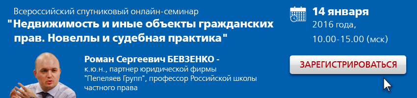 22-23 декабря 2015 г., Москва, семинар "Земельное право в 2016 году: предоставление участков и землепользование". Подробнее 23-24 декабря 2015 г., Москва, семинар "Концессии в коммунальной сфере: практика заключения и исполнения соглашений". Подробнее 23-24 декабря 2015 г., Москва, семинар "Эффективное взыскание задолженности: организационные и правовые механизмы". Подробнее 17-18 декабря 2015 г., Москва, Бизнес-завтрак в ГМК "Норильский никель". Подробнее 21-22 января 2016 г., Москва, дневной семинар повышения квалификации "Реформа норм договорного права Гражданского кодекса РФ 2014-2015 годов: комментарии к основным изменениям и первой практике применения". Подробнее 25 января – 4 апреля 2016 г., Москва, онлайн-программа повышения квалификации "Практика применения законодательства о банкротстве: новеллы законодательства, судебная практика и актуальные правовые вопросы". Подробнее 26-27 января 2016 г., Москва, семинар "Финансово-хозяйственная деятельность учреждений здравоохранения в 2016 году". Подробнее 28-29 января 2016 г., Москва, семинар "Водоснабжение и водоотведение в 2016 году: особенности правового и тарифного регулирования". Подробнее 29 января 2016 г., г. Москва, конференция "Битва за эффективность: как финансовому руководителю упрочить позиции компании и добиться личного прогресса". Подробнее 2-3 февраля 2016 г., Москва, семинар "Технологическое присоединение к электросетям: новые требования и новые возможности". Подробнее 4-5 февраля 2016 г., Москва, семинар "Государственно-частное партнерство в 2016 году: практика применения нового законодательства". Подробнее 4-5 февраля 2016 г., Москва, семинар "Подключение к коммунальным системам: разрешение споров и практические рекомендации". Подробнее 25 февраля – 1 июля 2016 г., Москва, вечерний курс "Комплексное долгосрочное повышение квалификации юристов". Подробнее 12 декабря 2015 г. - 31 мая 2016 г., XI Всероссийский профессиональный конкурс "Правовая Россия". Подробнее