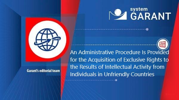 News of the week The President established a temporary procedure for residents to acquire exclusive rights to the results of intellectual activity or means of individualization from individuals in unfriendly countries. Permission from the Governmental Commission for Control over Foreign Investment in the Russian Federation will be required to carry out such transactions. Remuneration and other payments under the transaction will be transferred to a special O-type rouble account in an authorised bank, which is opened by the acquirer in the name of the copyright holder or foreign creditor (for the transfer of funds in order to fulfil obligations under guarantees or sureties). It will be possible to write off funds from a special account in favour of the copyright holder (foreign creditor) only with the permission of the Governmental Commission. The established procedure does not apply to the acquisition of rights to scientific, literary or artistic works, results of performing arts, phonograms, information on broadcasting or cable broadcasting organisations, as well as transactions worth no more than 15 million roubles. ! Documents' full texts are avaiable in the commercial version of the Garant database «Legislation of Russia in English» More helpful information In a new video, we would like to come across with some helpful information on the extraordinary features of the GARANT's Legislation of Russia in English, ensuring the most convenient document management. Important documents of the week that you might have missed