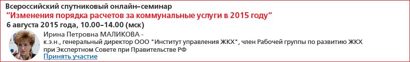 СОБЫТИЯ 18-19 августа 2015 г., Москва, Институт экономики, управления и социальных отношений (АНО) приглашает на семинар "Подготовка коммунальных организаций к долгосрочному тарифному регулированию". Подробнее 26-27 августа 2015 г., Москва, Институт экономики, управления и социальных отношений (АНО) приглашает на III Всероссийский семинар: Новое в законодательстве о концессиях: практика заключения и исполнения соглашений. Подробнее 23-25 сентября 2015 г., Москва, портал CFO-Russia.ru и Клуб финансовых директоров приглашают на Восьмую конференцию "Общие центры обслуживания: организация и развитие". Подробнее 28 сентября-4 декабря 2015 г., Москва, юридический институт "М-Логос" приглашает на вечерний курс повышения квалификации "Договорное право: актуальные вопросы и судебная практика". Подробнее
