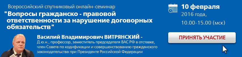 3 февраля 2016 г., Москва, семинар "Правовые позиции ВС РФ по отдельным нормам ч. I ГК РФ и законодательства об исполнительном производстве (разъяснения, комментарии)". Подробнее