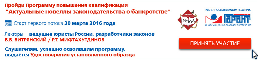 25 апреля – 15 июня 2016 г., Москва, Вечерний курс "Банкротство юридических лиц и граждан: анализ актуальных новелл законодательства и практики применения". Подробнее