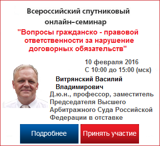 11 февраля 2016 г., Москва, семинар ИРСОТ "Налоговая оптимизация в 2016 году: способы, ограничения, риски". Подробнее 15-20 февраля 2016 г., Башкортостан, VIII Уральский форум "Информационная безопасность финансовой сферы". Подробнее 15-16 февраля 2016 г., Москва, семинар "Повышение квалификации по 44-ФЗ: контрактная система". Подробнее 15-17 февраля 2016 г., Москва, семинар "Тендер-менеджер: контрактная система (закупки по 44-ФЗ)". Подробнее 15-19 февраля 2016 г., Москва, семинар "Тендер-менеджер: комплексная подготовка". Подробнее 15-19 февраля 2016 г., Москва, семинар-практикум "Управление государственными и муниципальными закупками" (повышение квалификации 120 часов). Подробнее 16 февраля 2016 г., Москва, Семинар "Термины английского права в ГК РФ: толкование и перспективы применения". Подробнее 16-17 февраля 2016 г., Москва, семинар "Водоснабжение и водоотведение в 2016 году: особенности правового и тарифного регулирования". Подробнее 18 февраля 2016 г., Москва, V Ежегодная конференция ICA "Комплаенс-менеджмент: оптимизация и эффективность". Подробнее 18-19 февраля 2016 г., Москва, Программа повышения квалификации по 223-ФЗ. Подробнее 18 февраля 2016 года, Москва, Нефтяное пике: как действовать частным инвесторам в условиях слабого рубля". Подробнее 25-26 февраля 2016 г., 2-ая ежегодная конференция "Предотвращение внутрикорпоративного мошенничества и оценка благонадежности контрагентов". Подробнее 25 февраля – 1 июля 2016 г., Москва, вечерний курс "Комплексное долгосрочное повышение квалификации юристов". Подробнее 25-26 февраля 2016 г., Москва, Четвертый форум финансовых директоров строительной отрасли. Подробнее 25-26 февраля 2016 г., Москва, Форум финансовых директоров энергетической отрасли - 2016. Подробнее 18 марта 2016 г., Москва, Конференция "Защита бренда и товарного знака". Подробнее 24-27 мая 2016 г., Москва, саммит "Информационная и экономическая безопасность". Подробнее