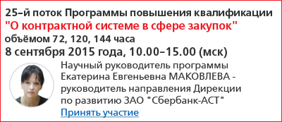 31 августа 2015 г., Москва, Русская Школа Управления приглашает на семинар "Тендер-менеджер: контрактная система (закупки по 44-ФЗ)". Подробнее 3 сентября 2015 г., Москва, ИД "Коммерсантъ" приглашает вас на деловой бранч "2015: Регулирование фармотрасли: новеллы и перспективы". Подробнее